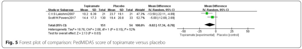 Le K, Yu D, et al. Is topiramate effective for migraine prevention in patients less than 18 years of age? A meta-analysis of randomized controlled trials. J Headache Pain. 2017; 18:69.