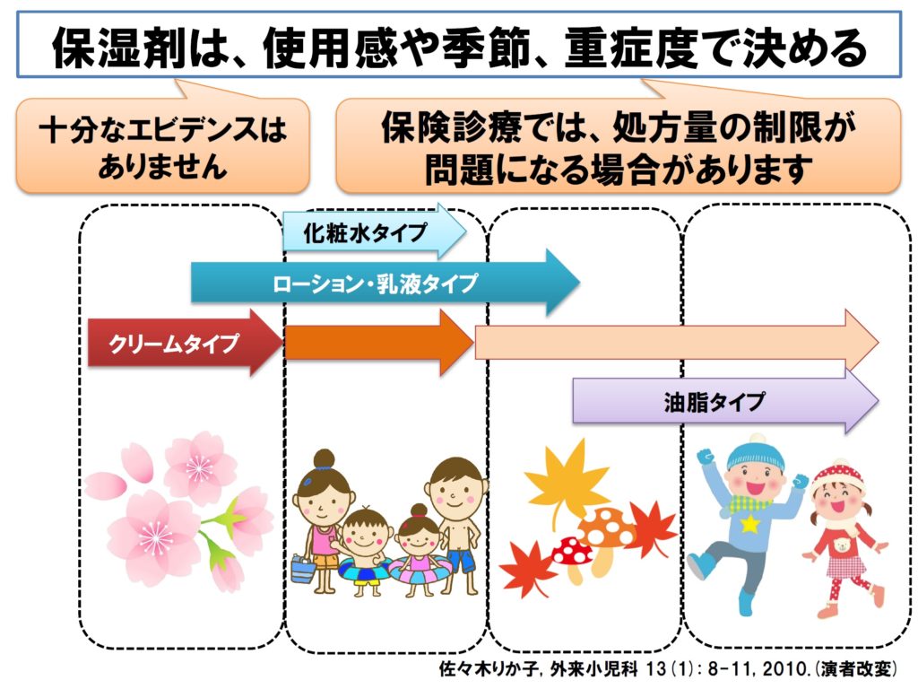 ■ 結局はありきたりな結果かもしれませんが、保湿剤は、使用感や季節、重症度で決めるということになります。