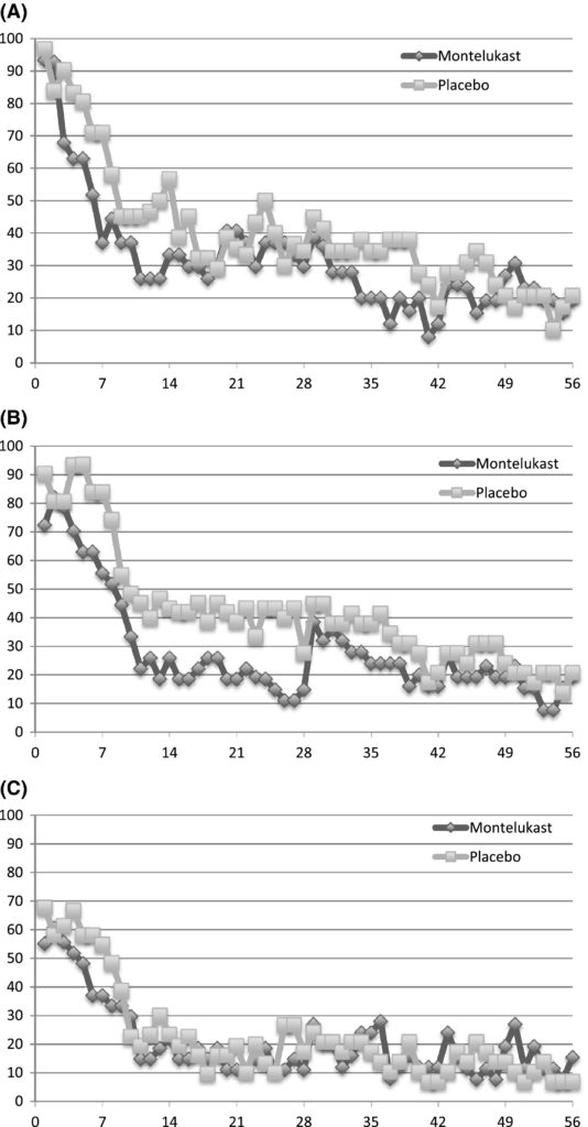 Keskin O, et al. The effect of montelukast on early life wheezing: a randomized, double‐blinded placebo‐controlled study. Pediatric Allergy and Immunology 2017. [Epub ahead of print]