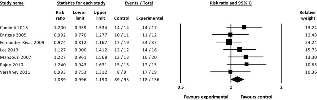 論文から引用。経口免疫療法(OIT)または舌下免疫療法(SLIT)vs 対照(ランダム効果モデル)による脱感作のリスク比。