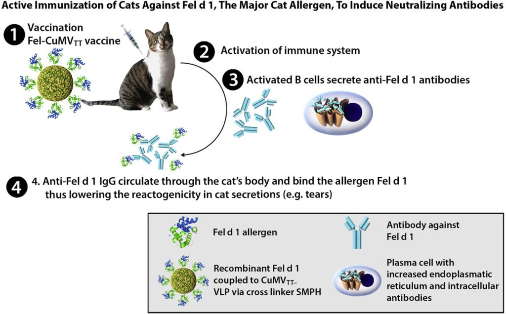 Thoms F, et al. Immunization of cats to induce neutralizing antibodies against Fel d 1, the major feline allergen in human subjects. J Allergy Clin Immunol 2019.
