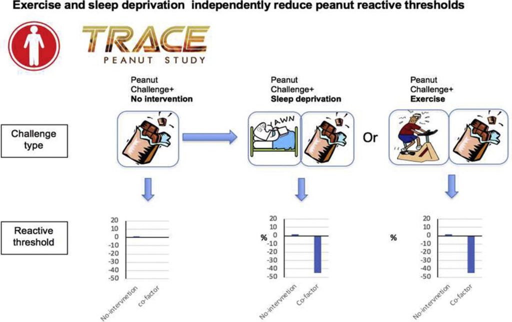 ■ 運動と睡眠不足は、ピーナッツアレルギー患者の反応閾値を有意に低下させ、反応リスクを高める。
