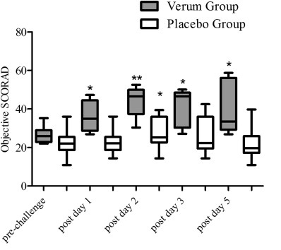 ■ ADの重症度は、各試験来院時に (objective) scoring of AD (SCORAD)により負荷後5日まで評価されたした。