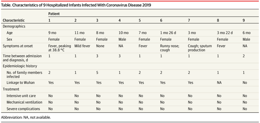 Wei M, et al. Novel Coronavirus Infection in Hospitalized Infants Under 1 Year of Age in China. Jama 2020. [Epub ahead of print]