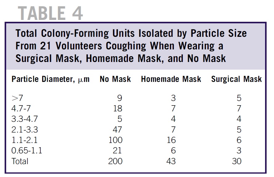 ■ いずれのマスクも、ボランティアによって排出される微生物数を有意に減少させたが、サージカルマスクは自家製マスクよりも3倍効果的だった。