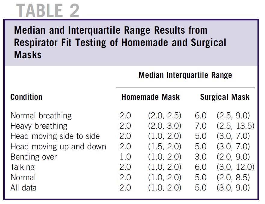 論文から引用。自家製マスクとサージカルマスクのフィッティング性能。
