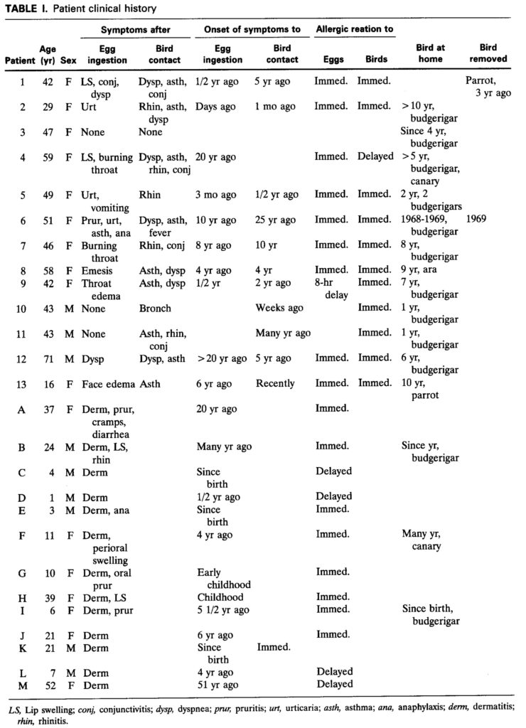 ■ bird-egg症候群の患者は主に成人女性であったが、卵白アレルギーは性別を特に問わず、主に小児に認められた。