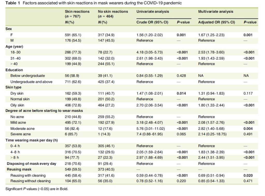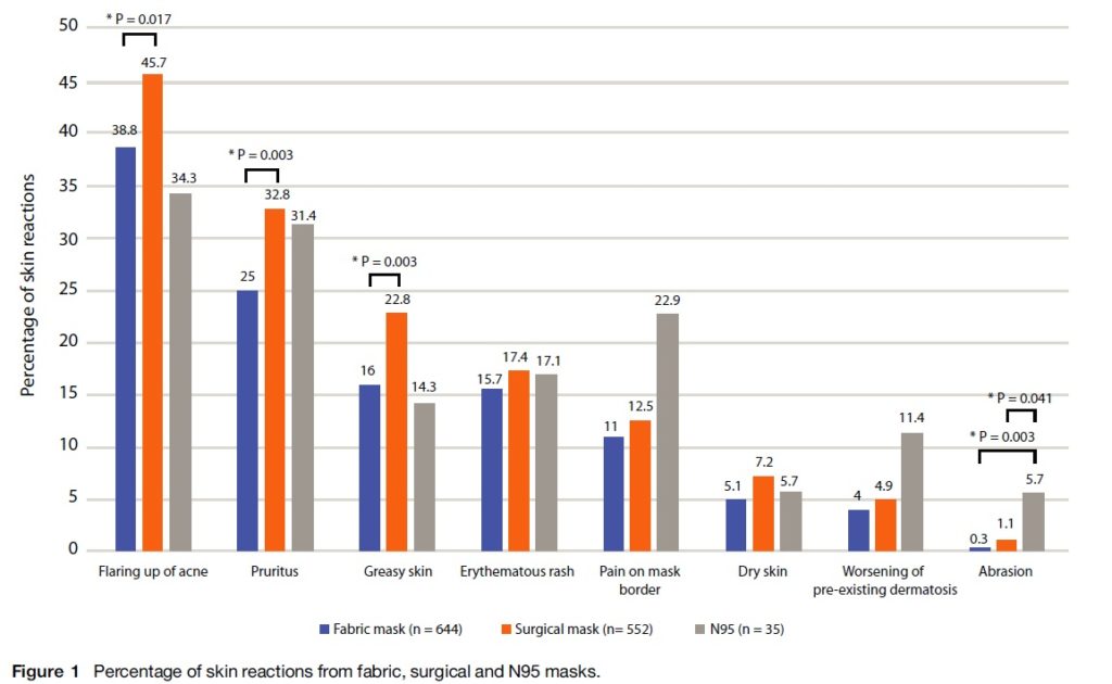 Chaiyabutr C, et al. Adverse skin reactions following different types of mask usage during the COVID‐19 pandemic. Journal of the European Academy of Dermatology and Venereology 2020.
