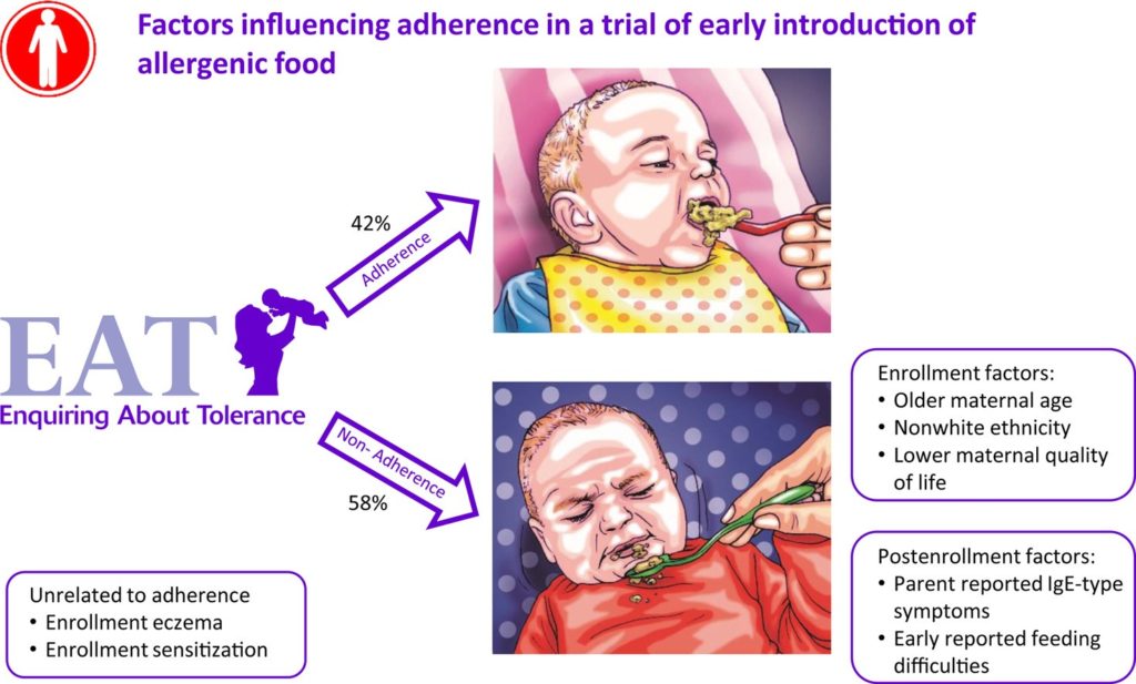 Perkin MR, et al. Factors influencing adherence in a trial of early introduction of allergenic food. Journal of Allergy and Clinical Immunology 2019; 144:1595-605.
