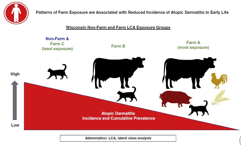 ■ ウィスコンシン州の農家の乳児は、AD発症率が低く、そして、農場における曝露パターンは、ADのリスクをよりはっきりさせた。