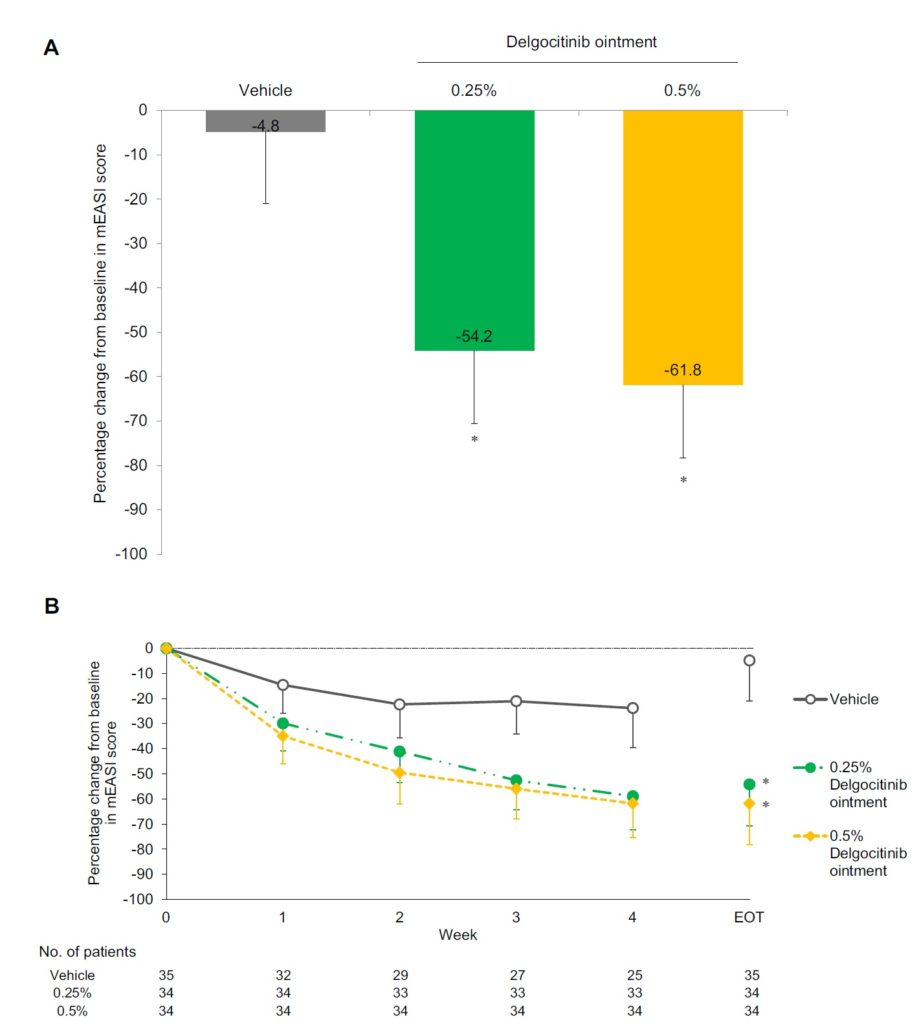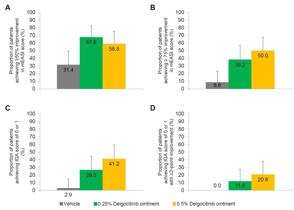 Nakagawa H, et al. Phase 2 clinical study of delgocitinib ointment in pediatric patients with atopic dermatitis. J Allergy Clin Immunol 2019; 144:1575-83.