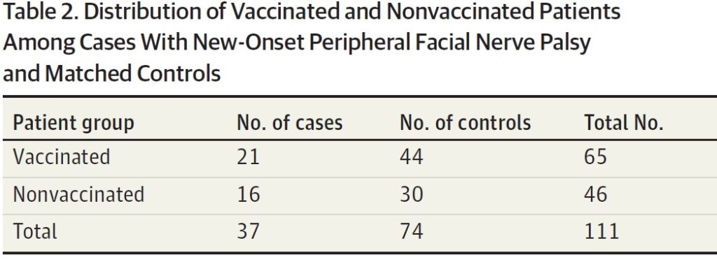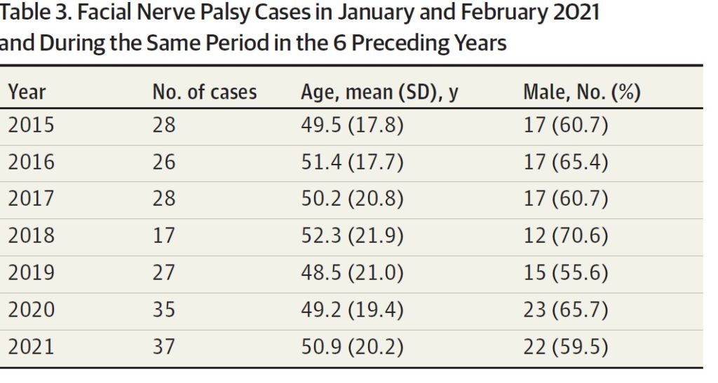 Shemer A, et al. Association of COVID-19 Vaccination and Facial Nerve Palsy: A Case-Control Study. JAMA Otolaryngol Head Neck Surg 2021.