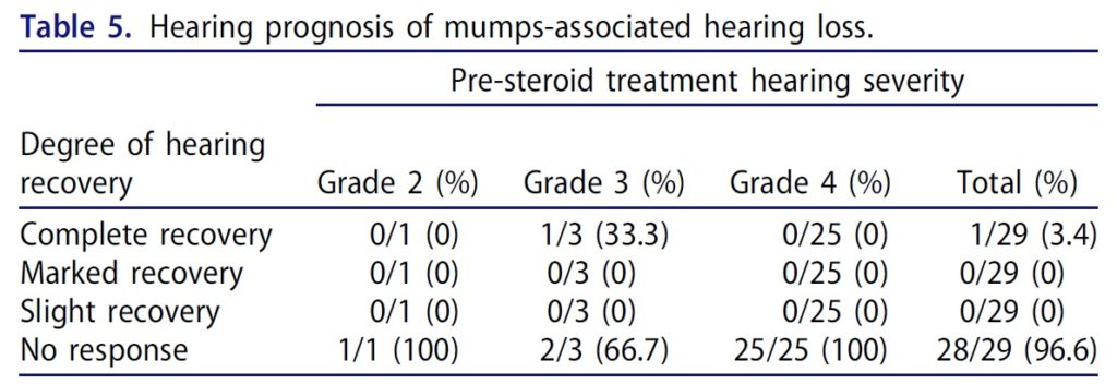 Morita S, et al. The clinical features and prognosis of mumps-associated hearing loss: a retrospective, multi-institutional investigation in Japan. Acta Otolaryngol 2017; 137:S44-s7.