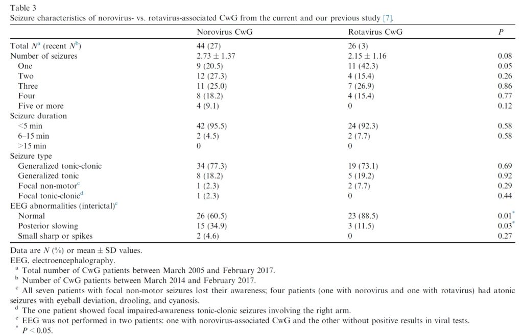 Kim BR, et al. Incidence and characteristics of norovirus-associated benign convulsions with mild gastroenteritis, in comparison with rotavirus ones. Brain and Development 2018; 40:699-706.