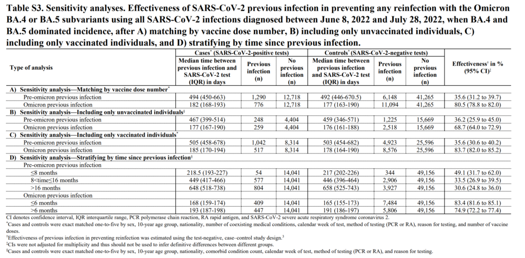 Altarawneh HN, Chemaitelly H, Ayoub HH, et al. Protective effect of previous SARS-CoV-2 infection against Omicron BA. 4 and BA. 5 subvariants. New England Journal of Medicine. 2022;387(17):1620-1622.