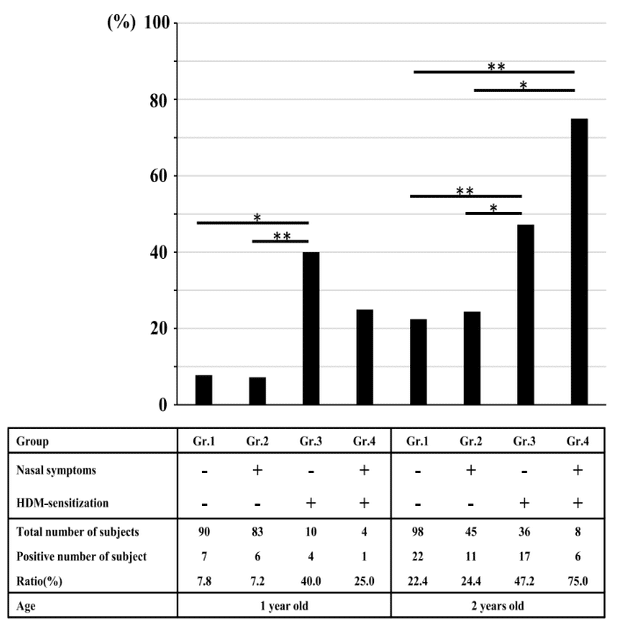 ■ 彼らの新生児は、1歳、2歳、5歳時に耳鼻咽喉科医と小児アレルギー専門医により診察された。