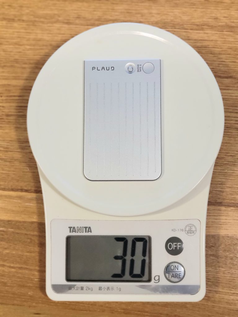 ■ PLAUD NOTEの重量は、本体のみで約30gでした。カードサイズで、この重さであれば十分に持ち運びしやすいでしょう。